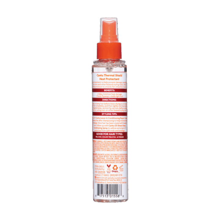Made with pure Shea Butter to replace vital moisture, revealing stronger, healthier hair with a natural shine. Cantu Thermal Shield Heat Protectant is a pre-treatment for all hairstyles to help minimise damage caused by flat irons and other heated styling tools, while adding moisture to strands for smoother, frizz-free results.